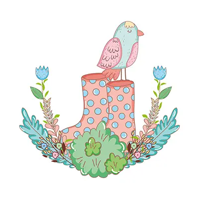 鸟 花 植物 靴子 波点 插画 春天 花园
