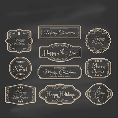 圣诞节 新年 鹿 星星 文字 复古 标签 简约