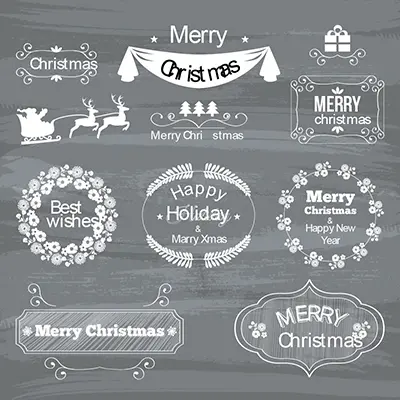 圣诞节 冬天 鹿 雪花 文字 复古 标签 装饰